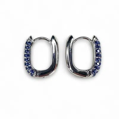Women's Silver / Blue Oval Pave Gemstone Silver Huggie Earrings - Sapphire Blue In Multi