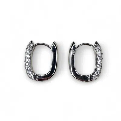 Women's White / Silver Oval Pave Gemstone Silver Huggie Earrings - Bright White In Multi