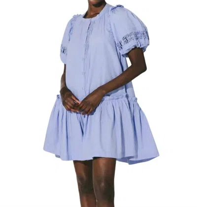 Dolly Ruffle Organic Cotton Minidress In Blue