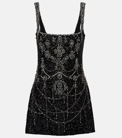 Crystal-embellished Beaded Mesh Mini Dress In Black