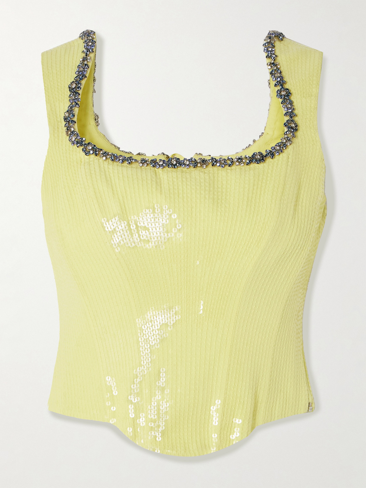 Blossom Crystal-embellished Sequined Tulle Bustier Top In Yellow