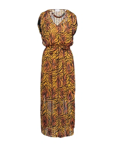 Woman Midi Dress Sand Size 10 Polyester In Pattern