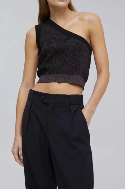 One Shoulder Knit Top In Black