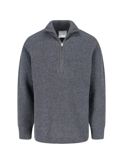 Structured Knitted Polo With Distinctive Collar And Ribbed Cuffs In Gray