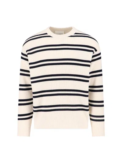 Contrasting Stripe Knit Sweater With Relaxed Fit In Neutral