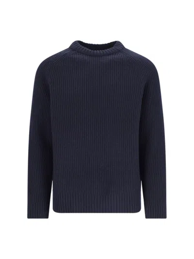 Navy Ribbed Knit Sweater With Crew Neckline In Blue