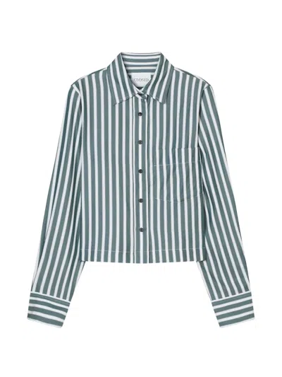 Striped Cropped Classic Shirt In Green