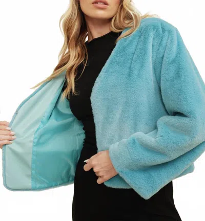 Faux Fur Coat In Aqua In Blue