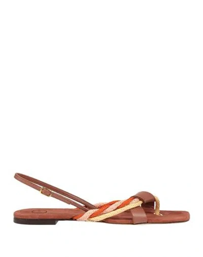 Woman Thong Sandal Brown Size 7 Leather, Textile Fibers