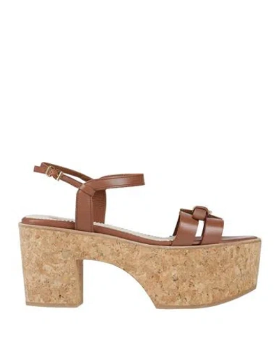 Woman Sandals Beige Size 9 Leather, Textile Fibers In Neutral