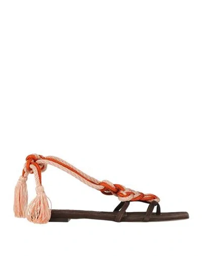 Woman Thong Sandal Orange Size 10 Leather
