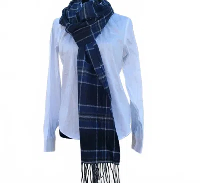 Women's Luxury Cashmere Scarf In Navy Plaid In Blue