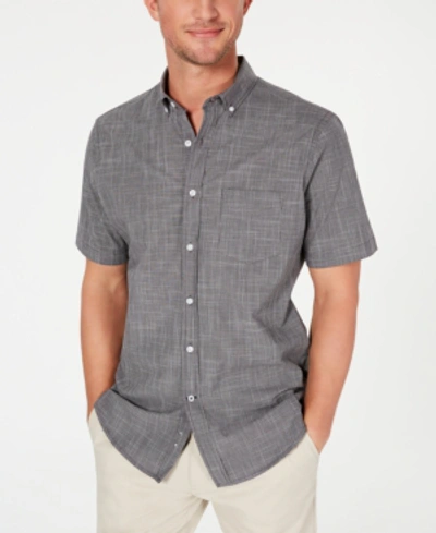 Men's Texture Check Stretch Cotton Shirt, Created For Macy's In Black