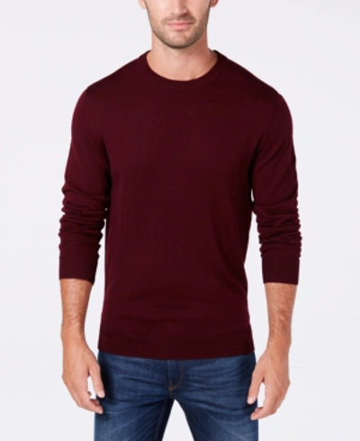 Men's Solid Crew Neck Merino Wool Blend Sweater, Created For Macy's In Burgundy