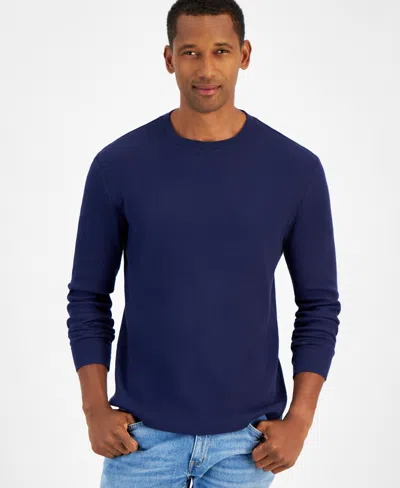 Men's Thermal Long-sleeve Ribbed Crewneck Sweater, Created For Macy's In Navy Blue