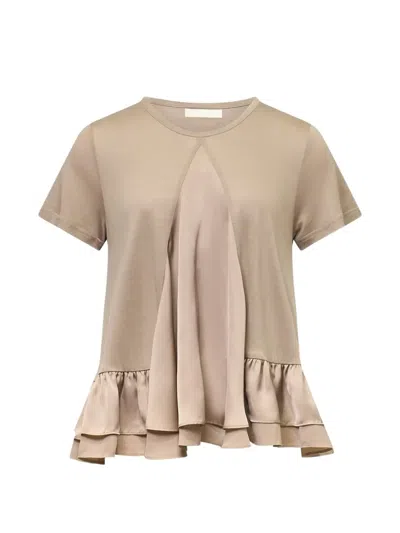 Ruffled Knit T-shirt In Metallic