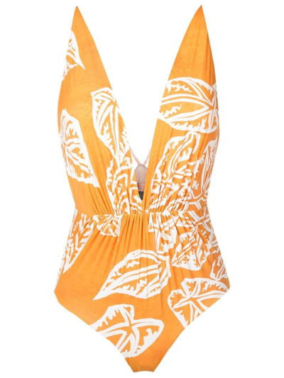 Asymmetric Ruched-detail Swimsuit In Yellow