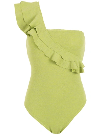 Ruffle-trimmed One-shoulder Swimsuit In Green