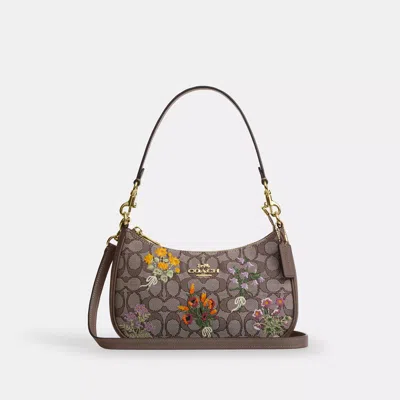 Teri Shoulder Bag In Signature Jacquard With Floral Embroidery