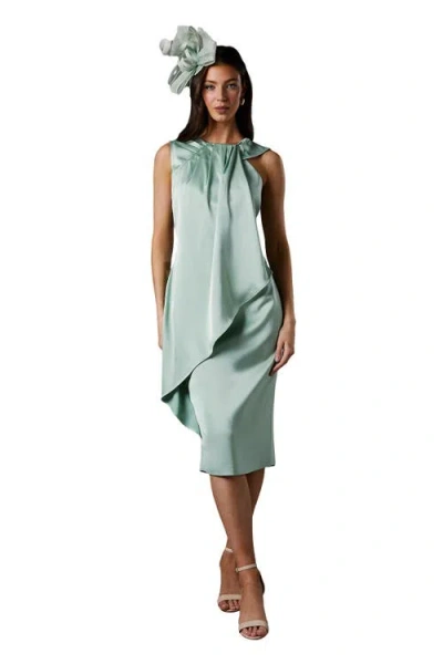 Sleeveless Satin Frill Midi Dress In Green