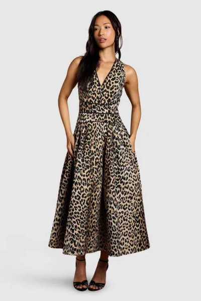 V-neck Animal Jacquard Midi Dress In Animal Print