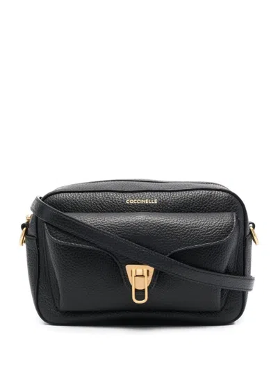 Pebbled Leather Shoulder Bag With Gold Tone Accents In Black