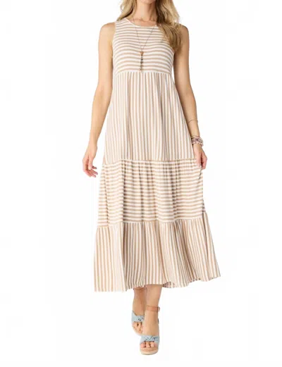 Janie Striped Tiered Maxi Dress In Taupe/ivory In Neutral