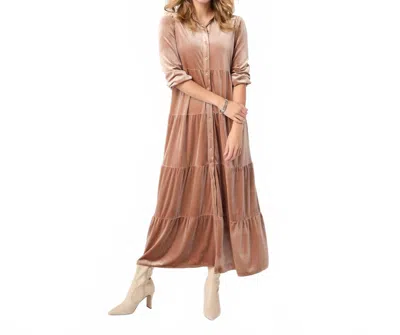 Romance Imagined Velour Dress In Apricot Buff In Neutral