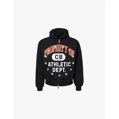 Mens Vintage Black Property Of Zipped Brand-print Cotton-jersey Hoody