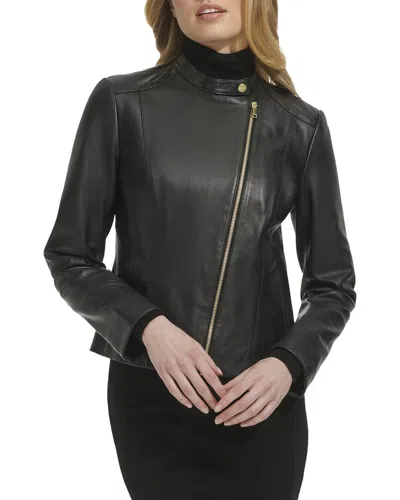 Women's Zip Up Leather Jacket In Black