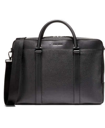Triboro Medium Leather Briefcase Bag In Black