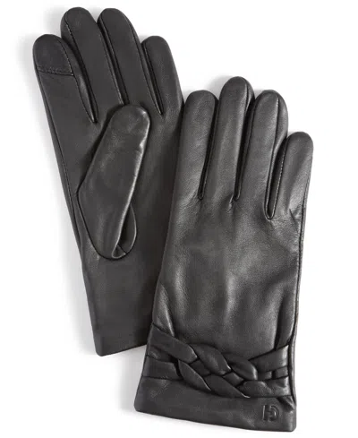 Women's Braided-cuff Leather Gloves In Black