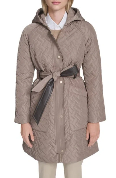 Women's Shirred-waist Hooded Quilted Down Coat In Grey
