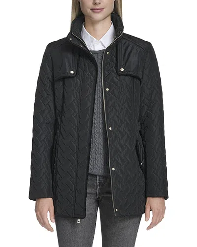 Quilted Down & Feather Fill Jacket With Faux Fur Trim In Black