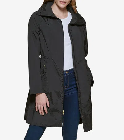 Belted Travel Packable Hooded Rain Jacket In Beige