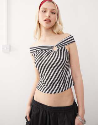 Striped Top With Ring Detail-multi