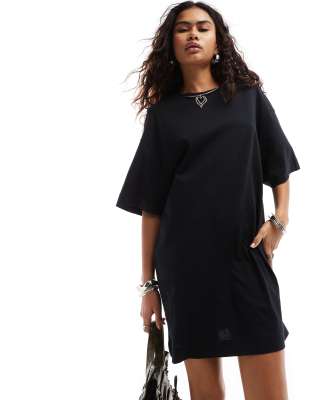 Nylon Smock Mini Dress With Pocket Detail In Black