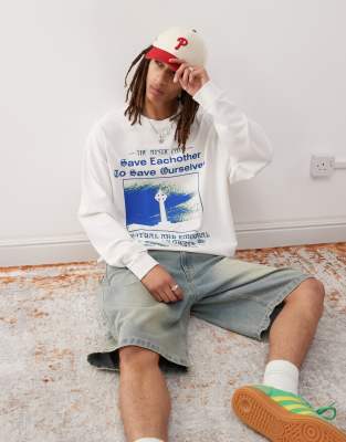 Long Sleeve Skater Fit T-shirt In White