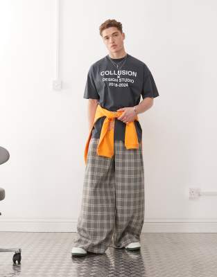 Relaxed Wide Leg Plaid Dress Pants In Multi