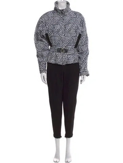 Pre-owned Printed Mock Neck Jumpsuit In Black