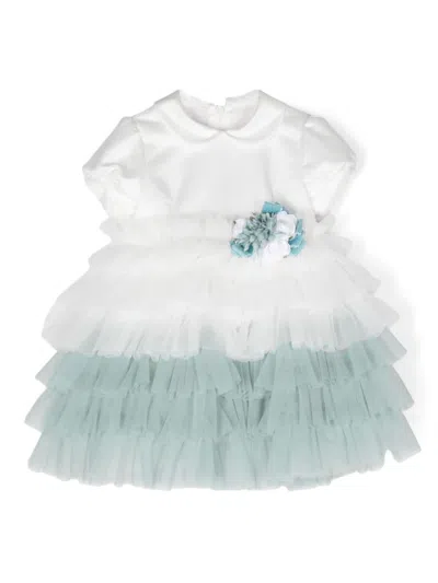 Babies' Floral-appliqué Layered Organza Dress In White