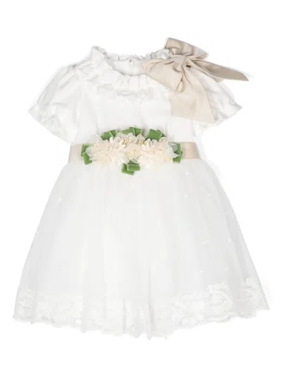 Babies' Floral-appliqué Bow-detail Dress In White