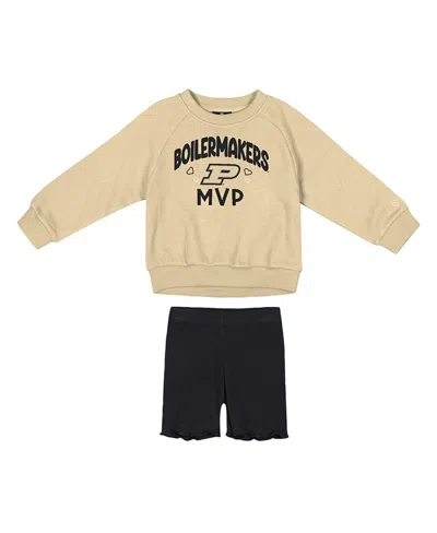 Babies' Girls 2-piece Toddler Gold/black Purdue Boilermakers Beta Fleece Sweatshirt And Shorts Set In Multi