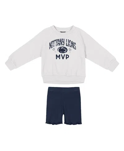 Babies' Girls 2-piece Toddler White/navy Penn State Nittany Lions Beta Fleece Sweatshirt And Shorts Set In Multi