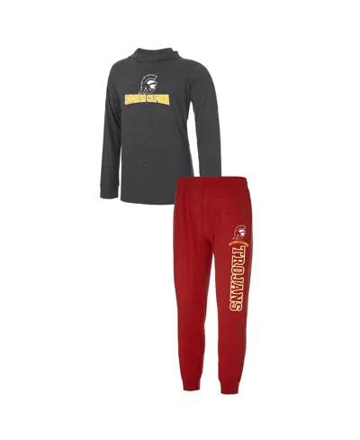 Men's Cardinal, Charcoal Usc Trojans Meter Pullover Hoodie And Joggers Sleep Set In Cardinal,charcoal