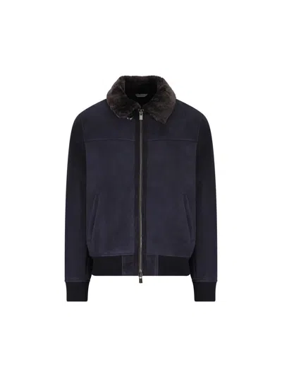 Fur-collar Suede Jacket In Blue