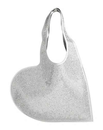 Mini Heart Metallic Leather Crossbody Tote In Silver