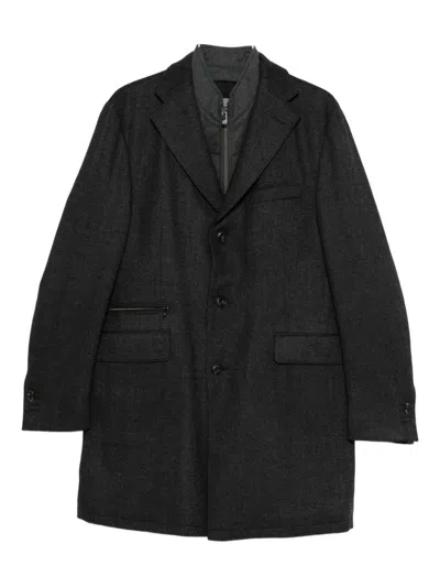 Tailored Grey Coat With Structured Lapel In Black