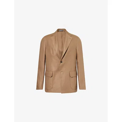 Mens Brick Brown Whisper Single-breasted Silk-wool Blend Jacket