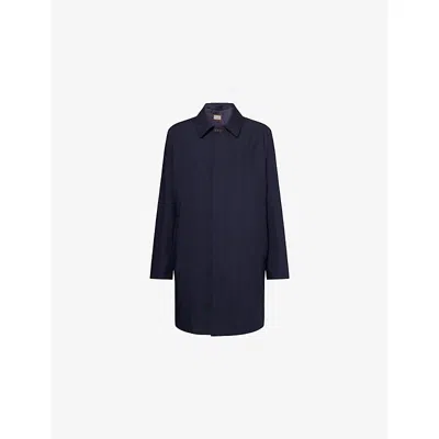 Mens Navy Blue Pointed-collar Detachable-lining Waterproof Jacket